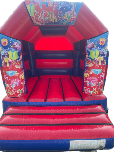 Don't miss out on the fun - book the 9ft x 11ft Red and Blue Happy Birthday Small Bouncy Castle for your next event and create unforgettable memories for your little ones!